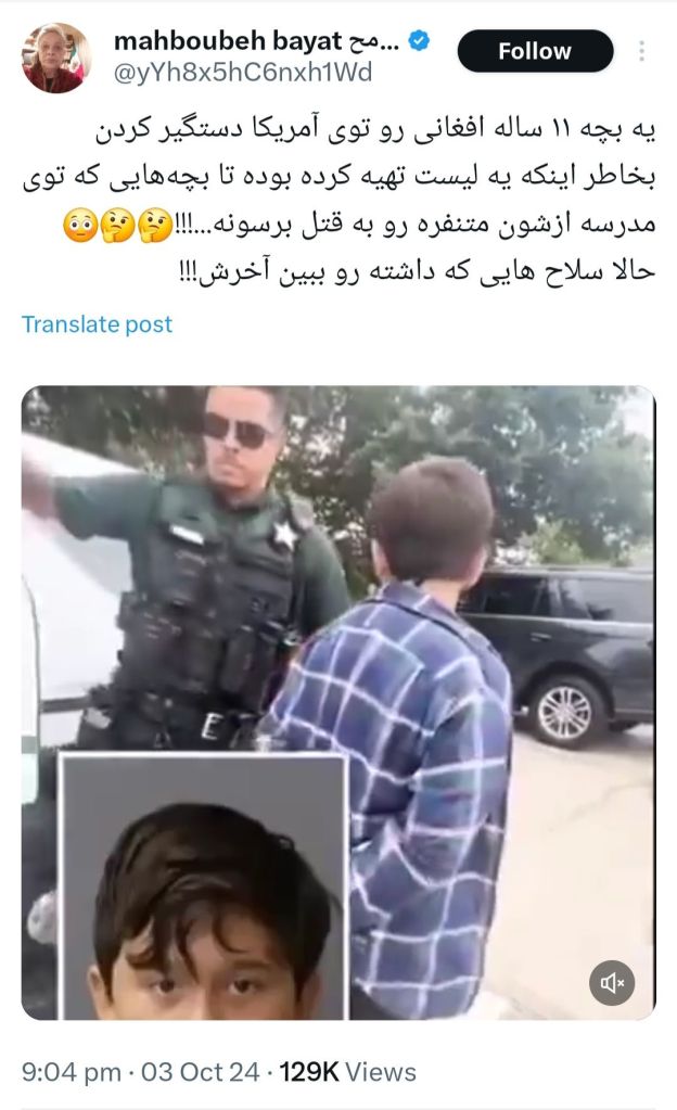 تعصب علیه پناهندگان افغانستان در ایران تنها به اقدامات دولتی و خشونتهای فردی محدود نمیشود. در بسیاری از موارد، رسانهها و فضای مجازی نیز به تقویت این تعصبها کمک کردهاند. نمونهای از این رفتارها توسط محبوبه بیات، پناهندهای ایرانی در اروپا صورت گرفت که یک ویدئو از یک دانشآموز آمریکایی به نام Carlo «Kingston» Dorelli را گفت یک افغان است. بیات در شبکه ایکس (توییتر سابق) این کودک را «افغانی» خطاب کرد و ادعا کرد که وی قصد قتل همکلاسیهای خود را داشته است، هرچند هیچ ارتباطی میان این کودک و پناهندگان افغانستان وجود نداشت. این نوع از انسانزدایی و برچسبزنی به پناهندگان، بخشی از تعصبی است که ریشههای عمیق در جامعه ایران پیدا کرده است.